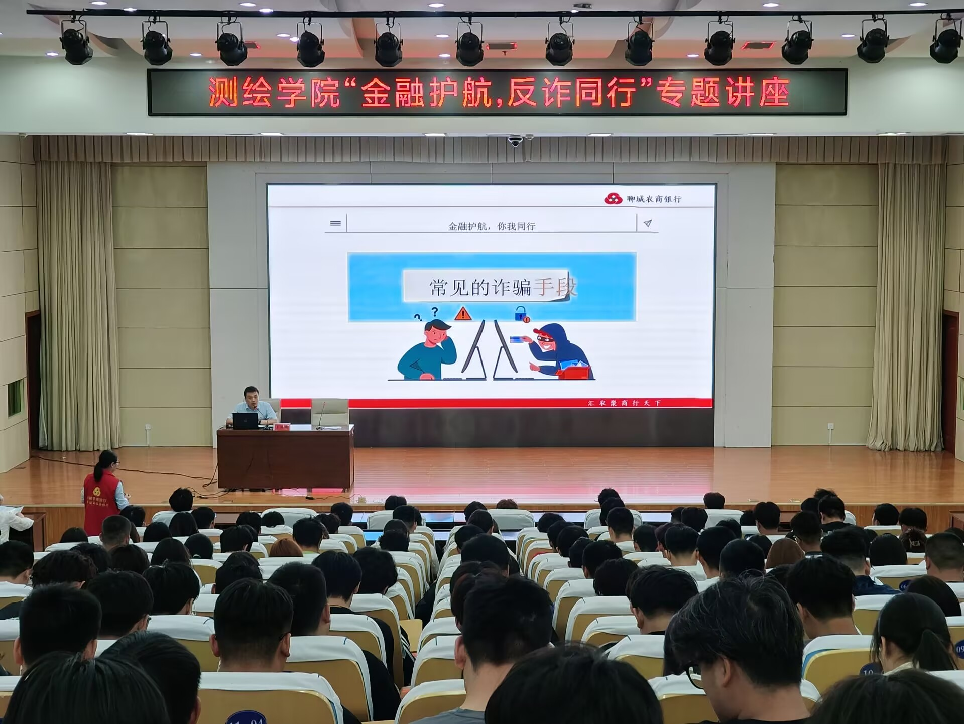 为进一步加强反诈宣传力度,切实提高大学生金融反诈意识和防范能力,助力构建和谐、稳定的“无诈校园”,近日,测绘学院特邀聊城农商银行广场支行副行长、资深会计师李德鹏在报告厅举办“金融护航,反诈同行”专题讲座,400余名师生参与活动。