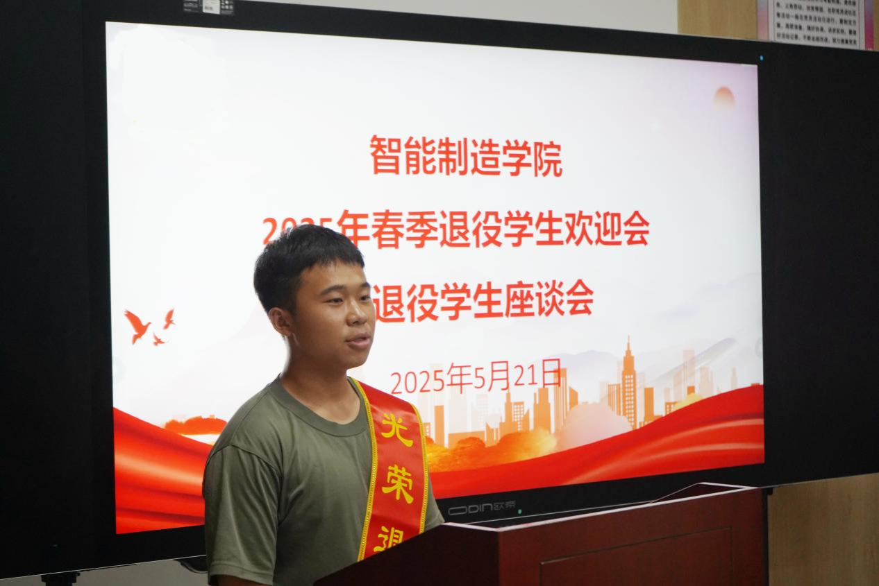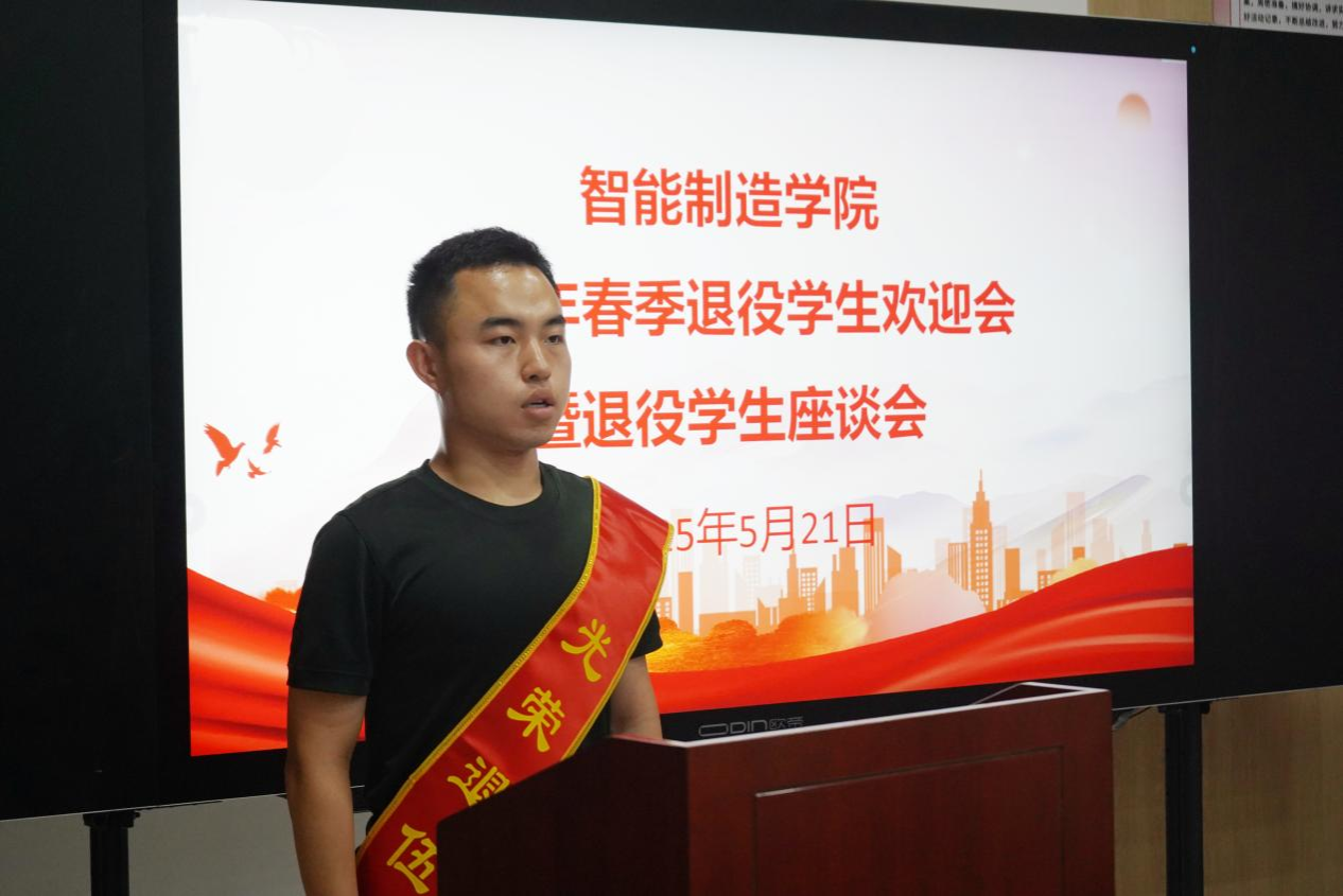 为进一步加强退役学生思想政治引领,充分发挥退役学生的榜样引领作用,强化国防教育的实践深度,5月21日,智能制造学院召开2025年春季退伍学生欢迎会暨退役学生座谈会。智能制造学院辅导员赵荣荣及全体退役复学在校生参加。