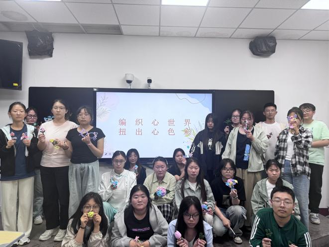 50余名学生参与了“编织心世界,扭出心色彩”手工活动。同学们用彩色扭扭棒创作出富有寓意的作品,展现了创意与心灵的交融。