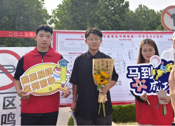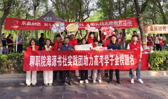 6月7日,为给奔赴高考战场的高三学子加油鼓劲,聊城职业技术学院人工智能与网络安全学院海源书社社团赴古楼街道聊城一中考点,开展“笔下生花,前路璀璨”高考志愿服务活动。