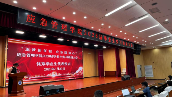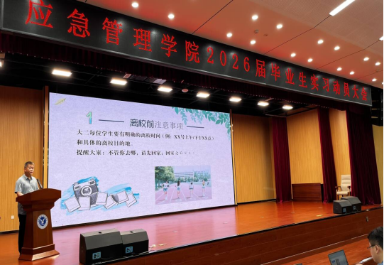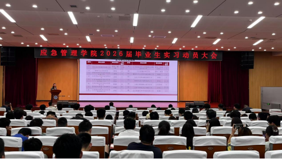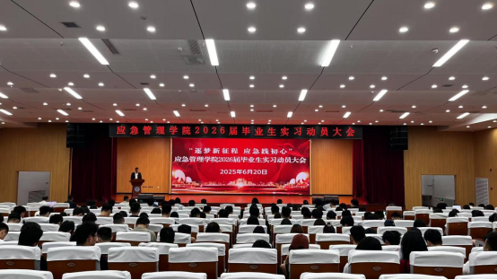6月20日,应急管理学院举行2026届毕业生实习动员大会。应急管理学院党总支书记张延栋,实习指导教师、实习班班主任与全体实习学生齐聚一堂,为即将开启的实习之旅蓄力赋能。