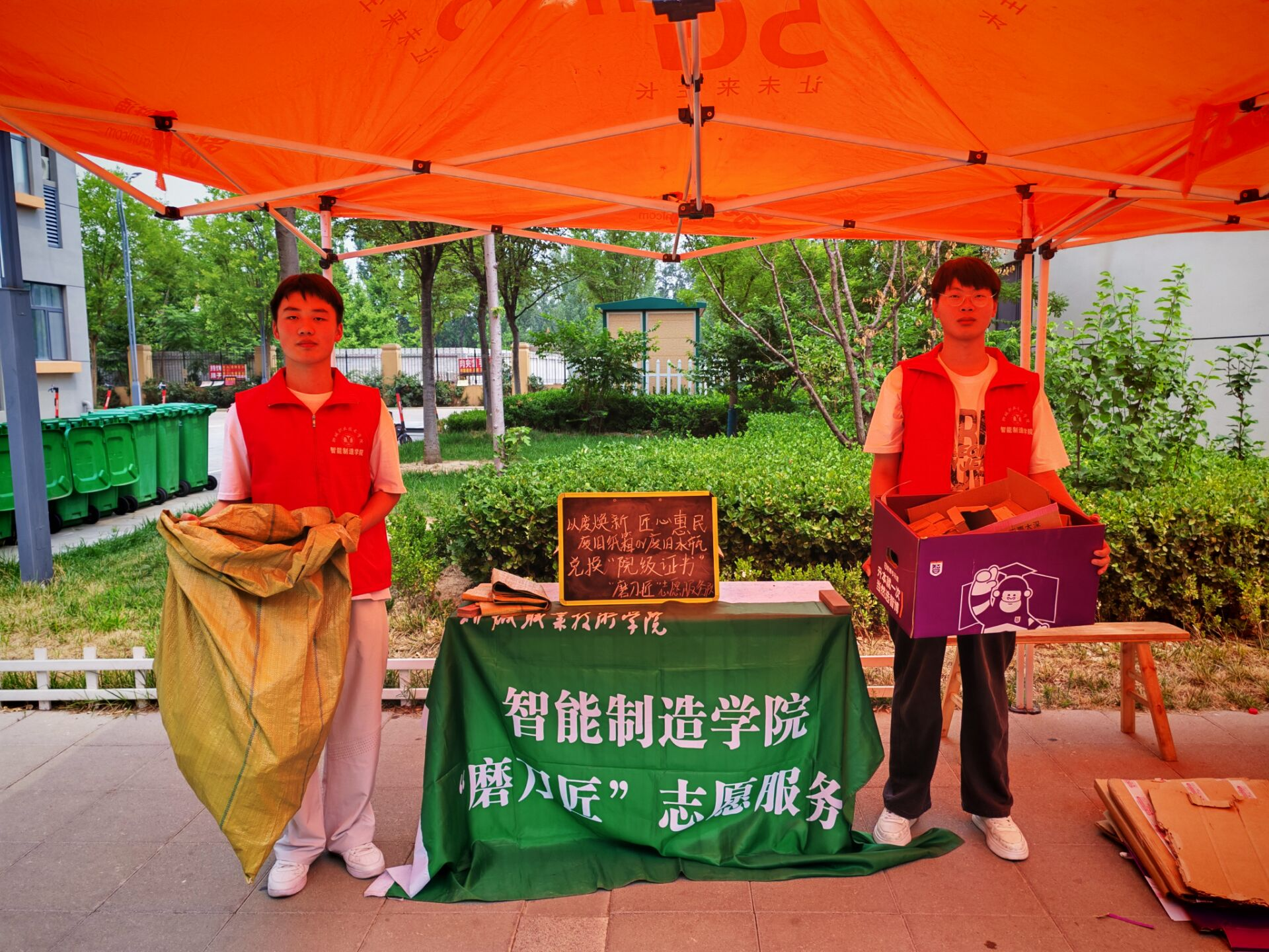 6月24日,智能制造学院启动“宿舍环保回收周”,在宿舍楼设“绿色兑换点”。学生踊跃参与,用废旧纸壳、饮料瓶兑换实用物品,以实际行动践行低碳理念。