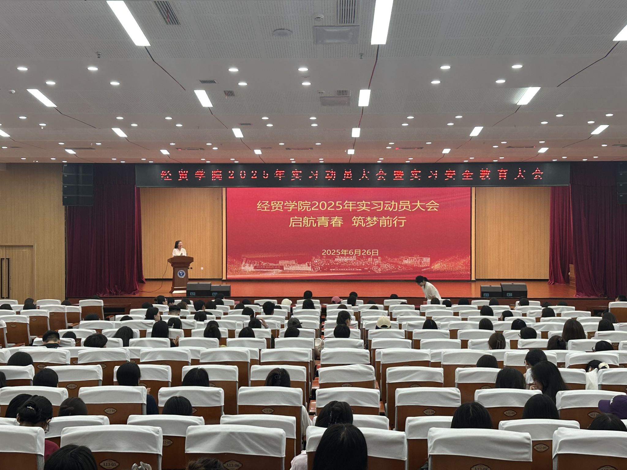 为进一步加强学生实习管理工作,确保学生实习质量,促进毕业生高质量就业,6月26日,经贸学院开展2025年“启航青春,筑梦前行”实习动员大会。经贸学院党总支副书记曹先鹏、副院长李新泉、团总支副书记苏飞、综合科副科长孙晓宇、全体实习班班主任、辅导员及2023级实习生参加会议。