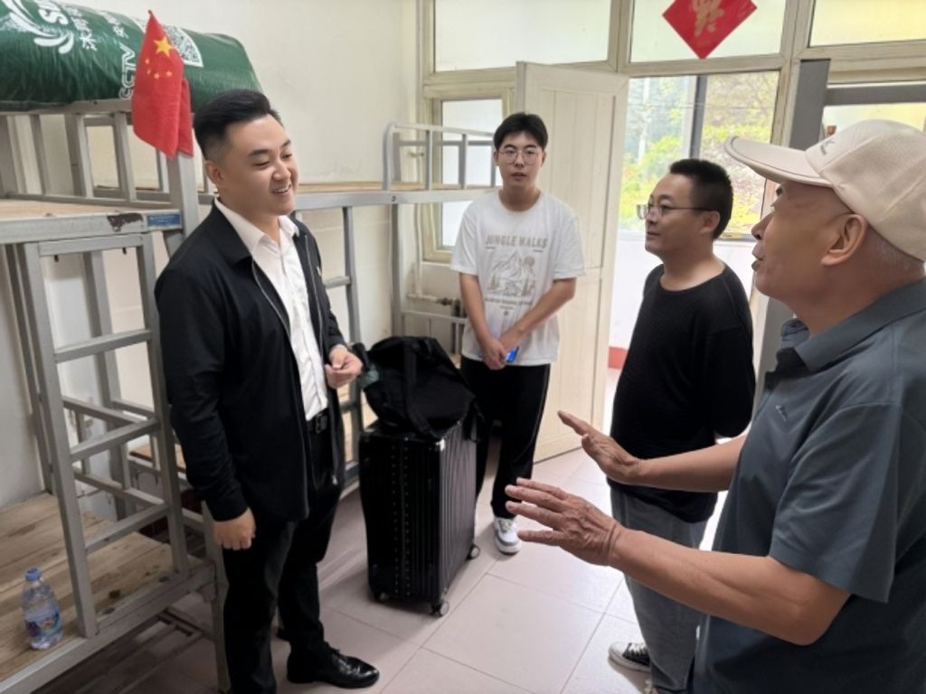 走进宿舍,细致服务解难题。新生入校期间,学校团委书记、健康护理学院党总支副书记张博文带领新生班主任走进宿舍,开启对新生的暖心交流。他们逐一走访每间宿舍,再次检查住宿环境与设施情况,耐心询问新生的报到情况与适应状态,细致解答专业学习、校园生活、安全注意事项等疑问,一句句叮嘱、一声声关怀,让初入校园的新生和家长们倍感温暖,也为他们营造了融入“护理大家庭”的第一份安全感。