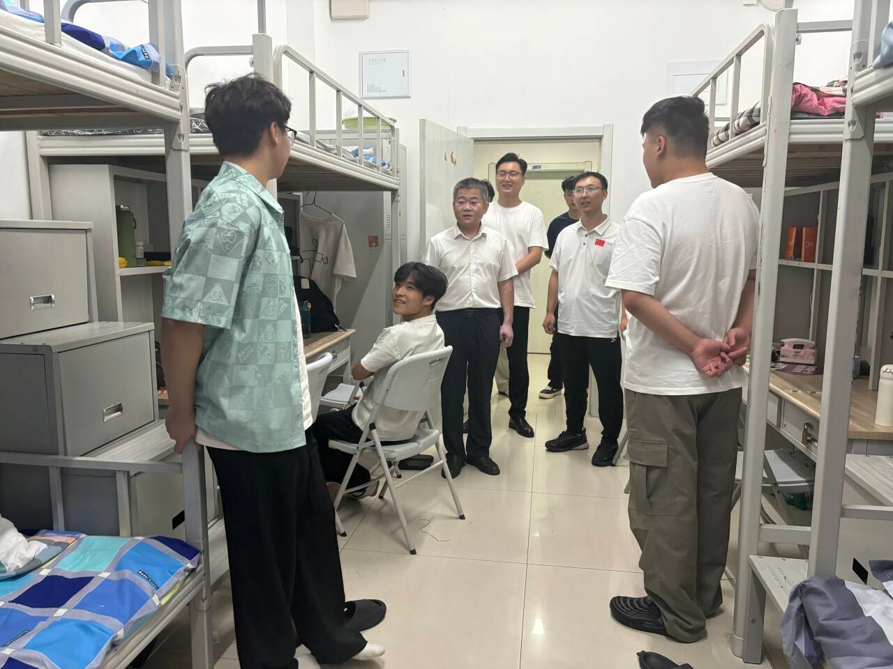 宿舍走访:贴心关怀,拉近心与心的距离。为帮助新生尽快适应新环境,各班主任辅导员深入学生宿舍看望学生。老师们与同学们亲切交流,询问大家的住宿感受、生活习惯以及对大学生活的初步印象,叮嘱同学们要注意宿舍安全,保持良好的作息习惯,鼓励大家积极融入集体生活,遇到困难及时向老师和同学求助。