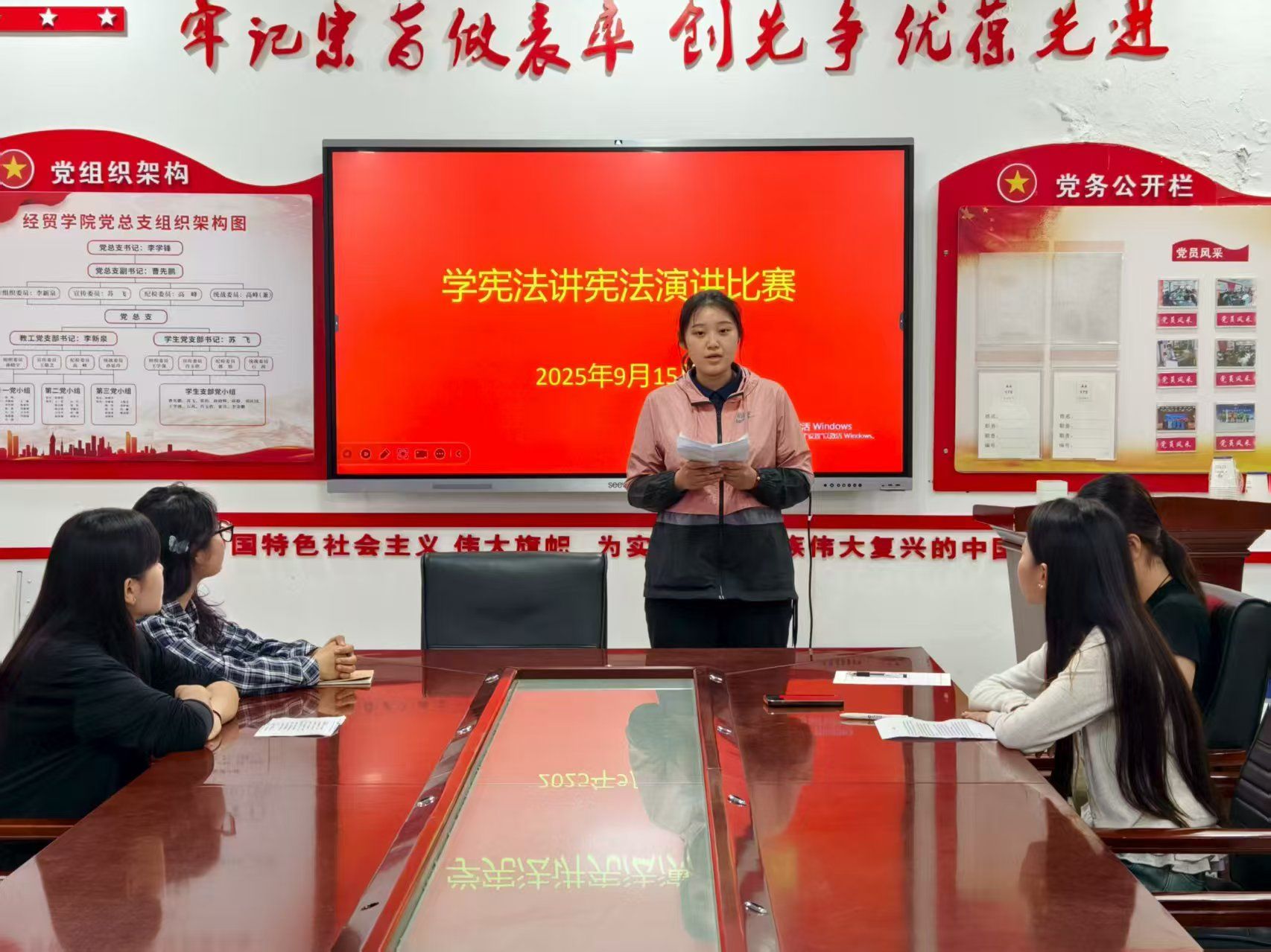 为增强师生宪法意识,营造尊法学法氛围,9月15日,经贸学院开展“学宪法讲宪法”演讲比赛。
