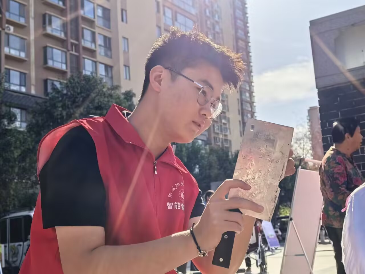 活动当天,“磨刀匠”志愿服务队的同学们早早来到现场,有条不紊地摆放好工具,居民们陆续送来需要打磨的刀具。志愿者们热情地接待每一位居民并熟练地拿起磨刀石,伴着“嚓嚓”的打磨声,让一把把老旧刀具重新焕发出锋利的光泽。
