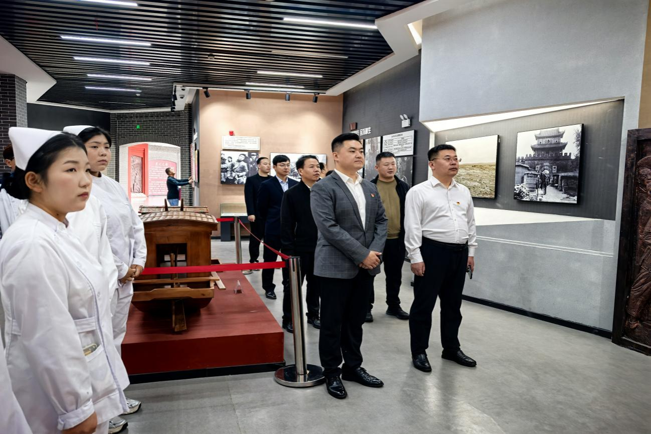 张博文一行在郭屯镇党委书记张贵芳及相关同志的陪同下,参观了具有重要历史意义的中共九都杨支部纪念馆。在庄严肃穆的氛围中,大家认真聆听讲解,观看历史文物和资料,深刻感悟革命先辈坚定的理想信念和艰苦奋斗的精神,接受了一次深刻的党性教育和思想洗礼,进一步激发了大家赓续红色血脉、担当时代责任的历史使命感。