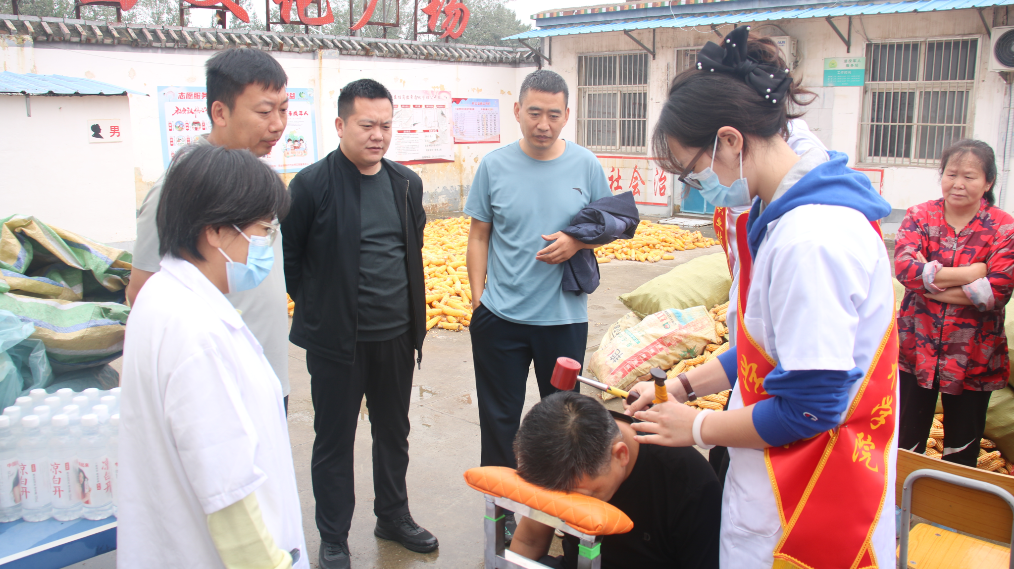 本次活动还特别设置了中医药文化体验环节。志愿者们通过发放宣传册、现场讲解等方式,向村民宣传中医药文化知识。最引人注目的是“古法锤砂”体验区,许多村民怀着好奇前来尝试这一传统中医外治法,亲身感受中医药的独特魅力。整个义诊活动现场气氛热烈,秩序井然,充满了温情与关怀。
