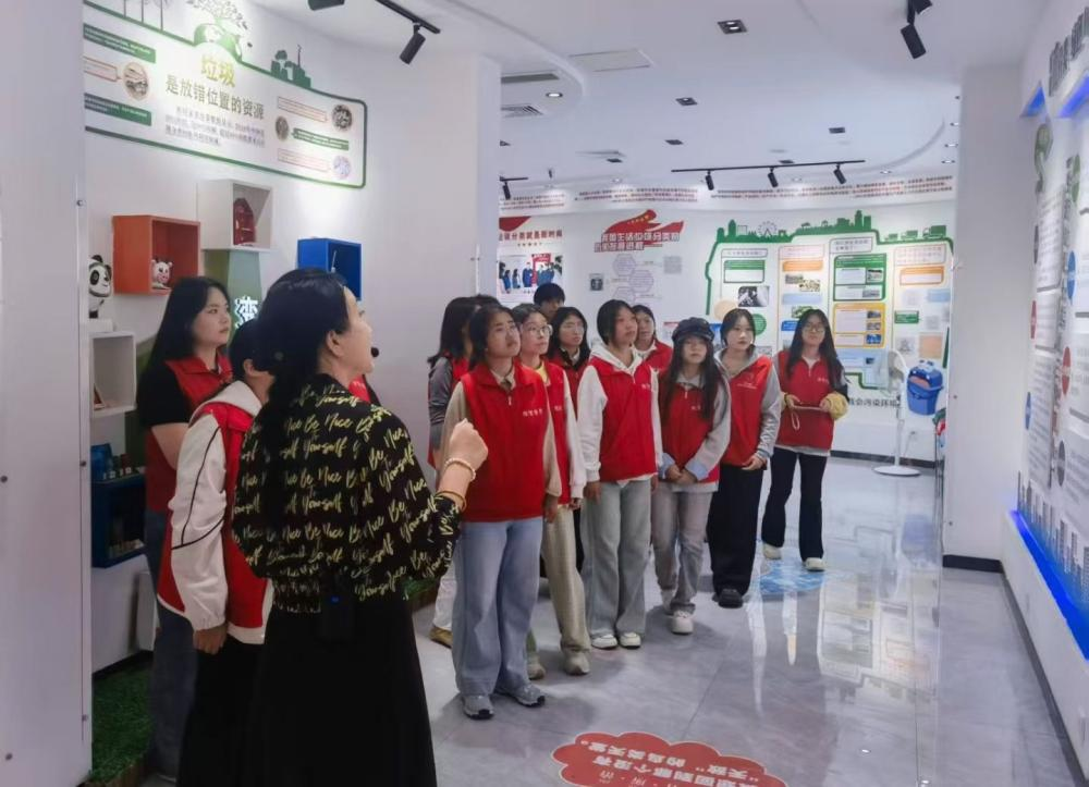在宣教中心,志愿者们通过知识讲解、互动展板等形式,系统学习垃圾分类标准、处理流程及环保价值;随后前往社区便民收集站,在工作人员指导下参与垃圾投放督导、分类知识宣讲,了解“可回收物”“厨余垃圾”等分类要点。