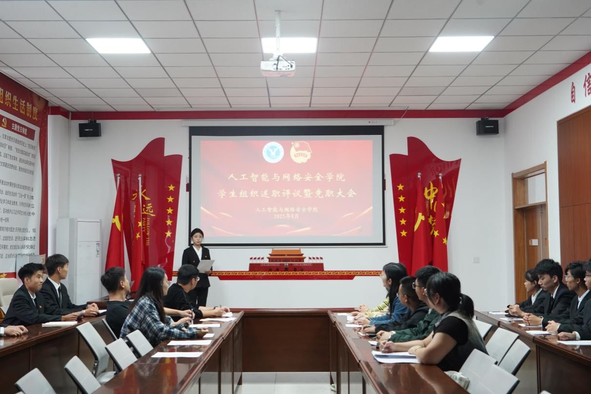 为总结学生组织工作经验,选拔优秀学生骨干,推动学院学生工作高质量发展,9月28日,人工智能与网络安全学院召开学生组织述职评议暨竞职大会。学院党总支副书记魏伟、团总支书记王哲及全体辅导员出席会议,各学生组织竞选候选人参会。