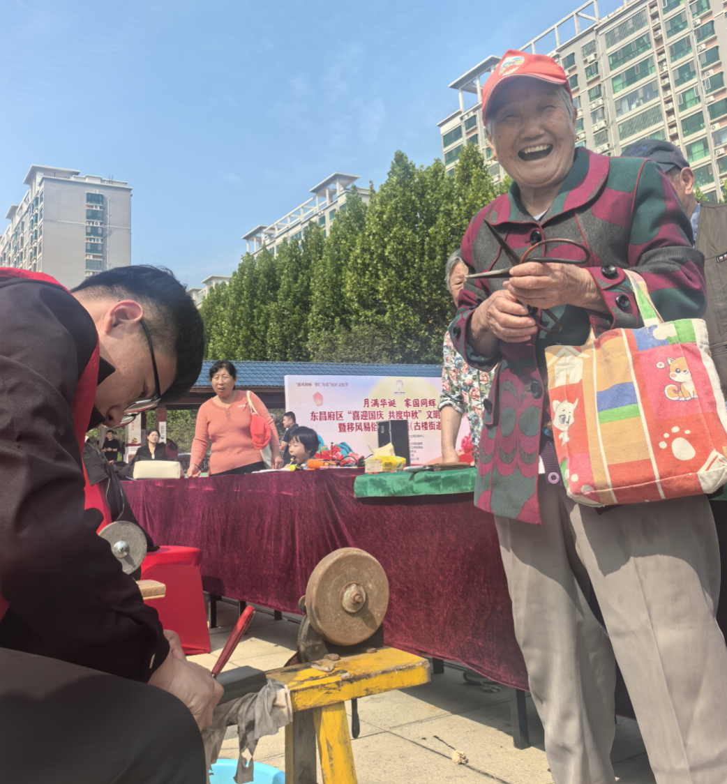 金秋送爽,双节同庆。9月28日,东昌府区古楼街道办事处向阳社区颐馨园小区新时代文明实践广场热闹非凡,东昌府区“惠风和畅 里仁为美”社区文化节暨“迎中秋 庆国庆”文艺汇演在此温情启幕。智能制造学院“磨刀匠”志愿服务队积极响应“百万大学生进社区”社会实践号召,走进社区开展免费磨刀磨剪便民服务,以实实在在的行动为居民送去节日温暖,成为活动现场一道亮眼的青春风景。