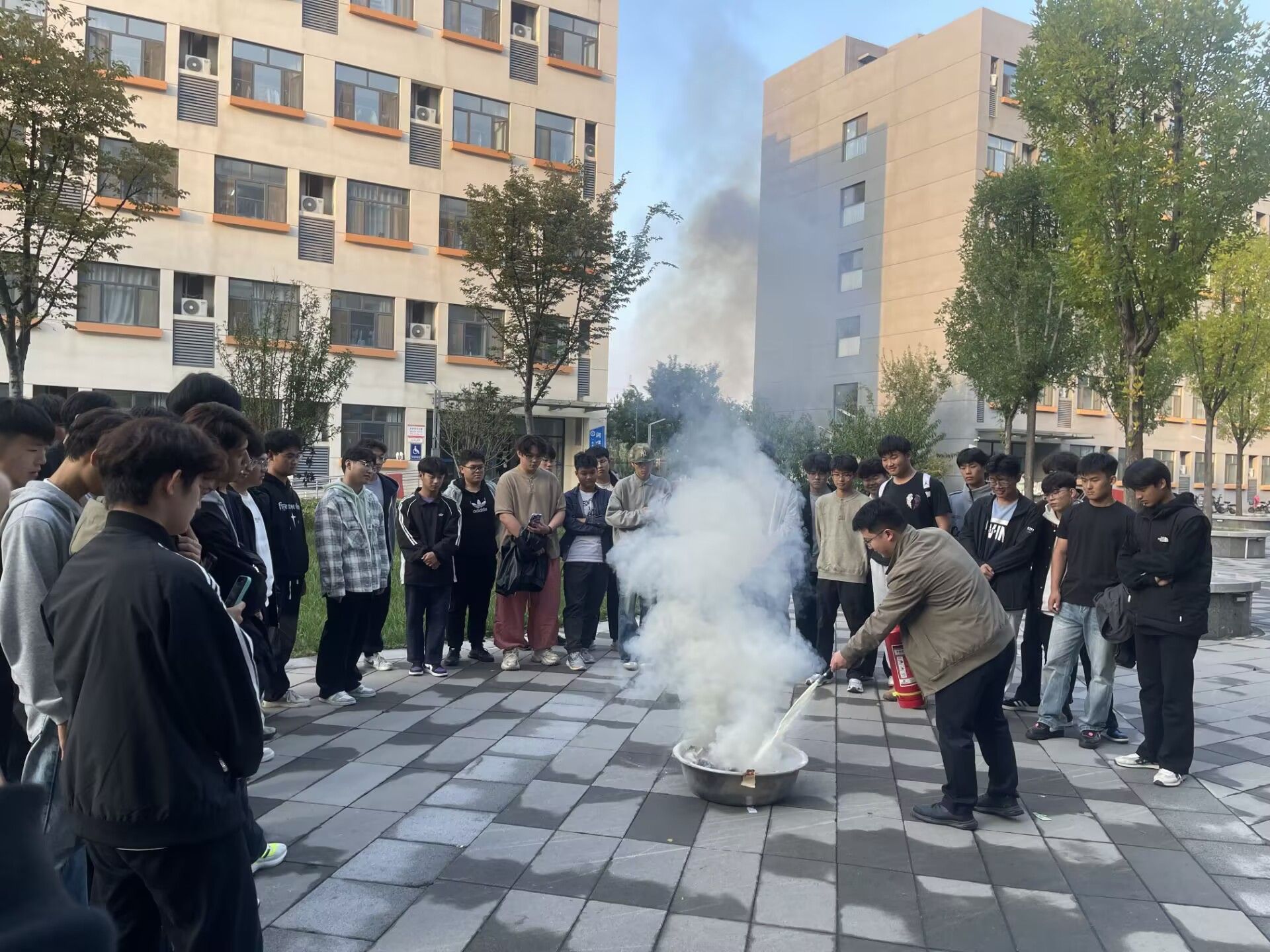实训室模拟场景为实训设备因电路老化引发“火情”,并伴有少量“浓烟”。警报响起后,实训室负责人立即启动应急响应,组织学生采用低姿势、捂口鼻,沿安全通道迅速撤离。在学生宿舍区,演练模拟了某宿舍因违规电器使用引发“火灾”。宿舍管理员第一时间打开所有安全出口,并协助学生用湿毛巾捂住口鼻,沿指定疏散路线快速、有序地向室外安全地带集结。疏散完毕后,辅导员现场演示了灭火器的使用方法,并指导部分学生代表实际操作了干粉灭火器,掌握了“提、拔、握、压”的灭火要领。