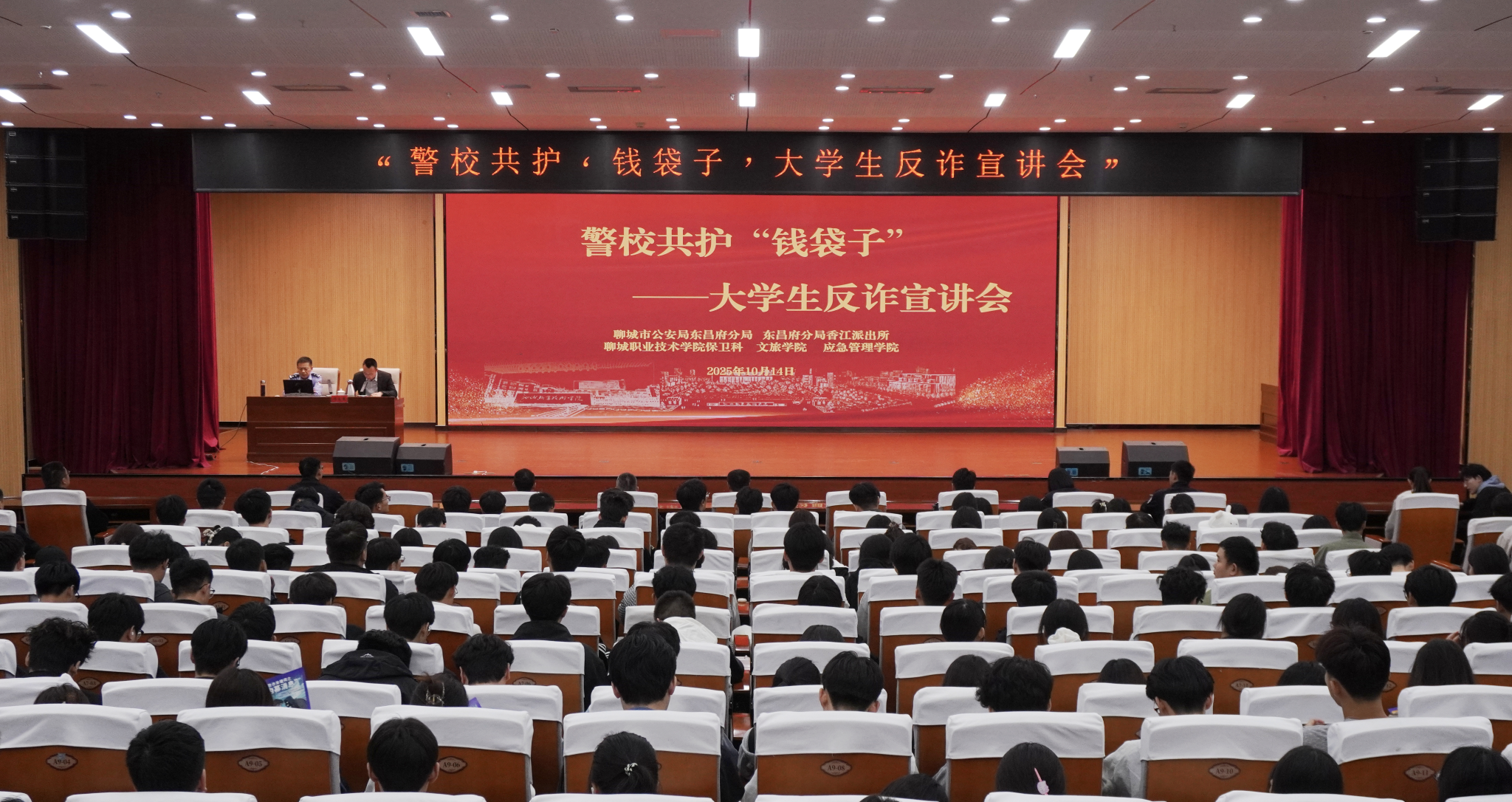 为进一步增强大学生防范电信网络诈骗意识,切实守护学生财产安全,10月14日晚,文旅学院联合聊城市公安局东昌府分局,香江派出所,校保卫科、应急管理学院,举办“警校共护‘钱袋子’——大学生反诈宣讲会”。聊城市公安局东昌府分局刑侦大队副大队长冯孟来,香江派出所民警代表,学校保卫科科长杨继岭、应急管理学院党总支书记张延栋、文旅学院团总支副书记杜辉、保卫科教师张广建,600余名师生参加宣讲会。