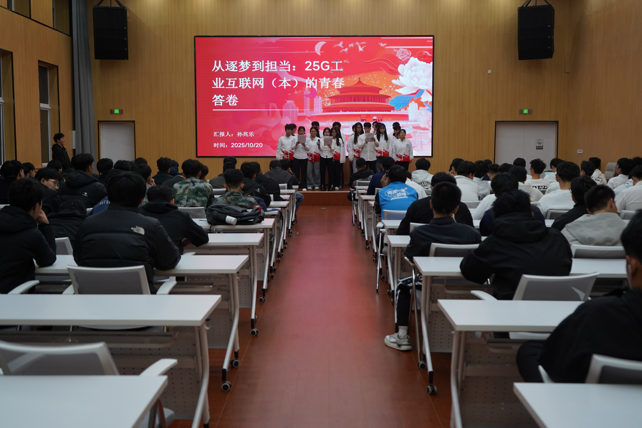 活动中,各班级通过PPT宣讲班级组织架构、班风学风、学生活动,图文并茂地阐述班级成长轨迹,并依次进行才艺展示,以多元形式展现班级特色。25G工业互联网应用(本)1班创新采用“朗诵+情景剧”形式,将班级学习互助、活动协作的温暖故事搬上舞台,细腻情感引发台下共鸣;25G机械制造及自动化技术2班结合专业特色,在节目中融入智能制造相关元素,既彰显班级活力,又体现专业风采,获得老师与同学们的一致认可。