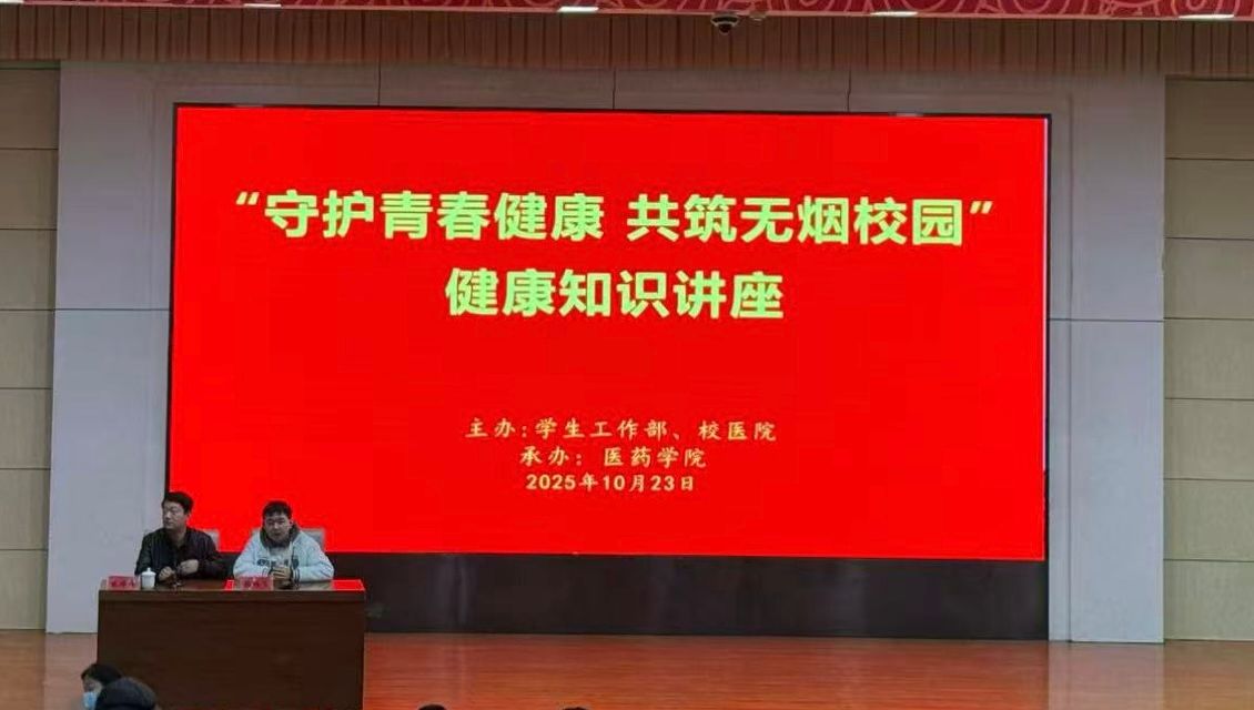 为增强学生控烟意识,引导学生养成良好习惯,共同营造清新健康的无烟校园氛围,10月23日,医药学院联合学生工作部、校医院共同开展“守护青春健康 共筑无烟校园”主题健康知识讲座。特邀聊城市肿瘤医院胸外科副主任医师张华伟、口腔科医师张鹏飞担任主讲。医药学院、护理学院、经贸学院、测绘学院师生代表参加活动。