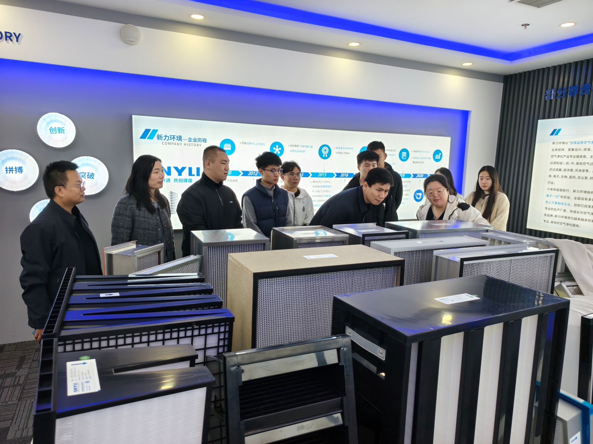 在新力环境科技(山东)有限公司人事部负责人刘笑笑经理的陪同下,师生参观了公司的研发中心、技术部门及项目成果展示区,详细了解了公司在智慧环保、环境监测、大数据分析等领域的软件技术应用与创新实践。新力环境科技作为一家专注于环境保护技术的高新技术企业,其业务发展对人工智能、软件技术和网络安全等领域的高素质人才有着迫切需求。