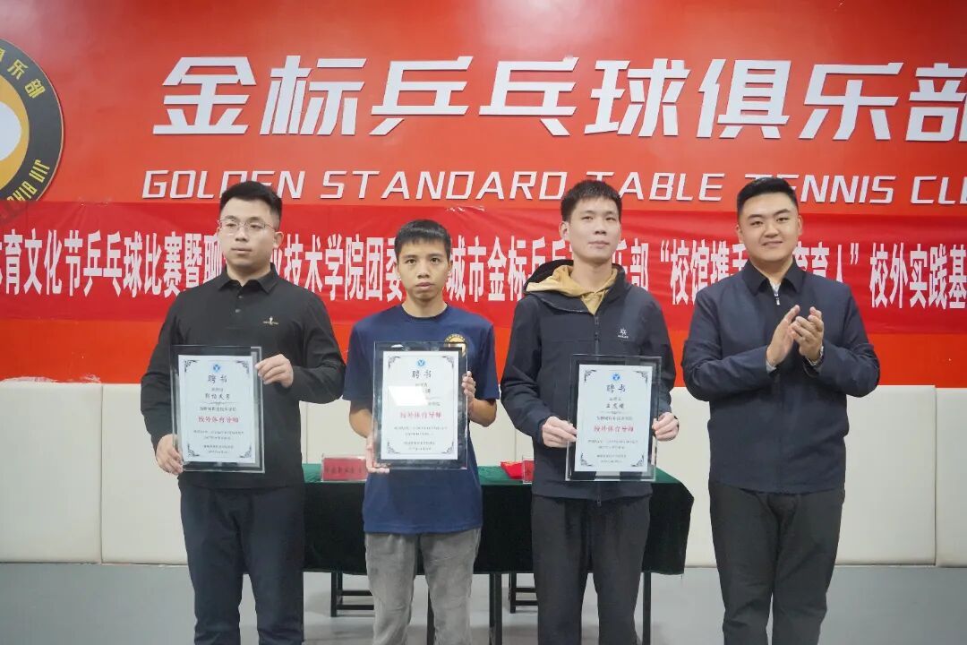 10月25日,聊城职业技术学院第五届体育文化节乒乓球比赛暨“校馆携手 体育育人”合作共建仪式在聊城市金标乒乓球俱乐部举行。校团委书记、健康护理学院党总支副书记张博文,金标乒乓球俱乐部负责人郭杨昊男、技术指导王晨曦以及校团委、各学院体育文化节负责教师、乒乓球运动员40余人参加。