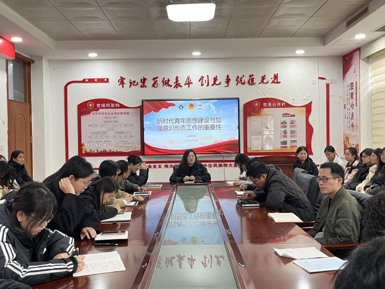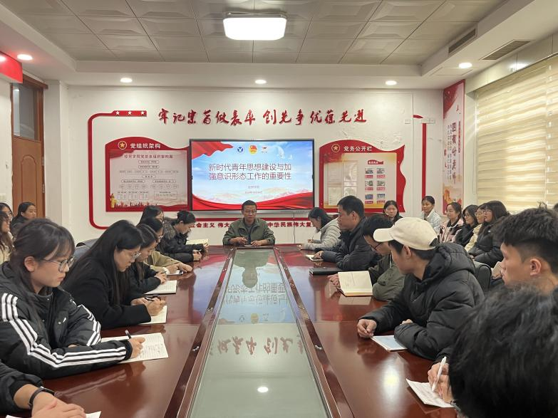 王学强以“新时代青年思想建设与加强意识形态工作的重要性”为主题,结合当前社会思想动态与高校青年特点,领学了关于青年工作和意识形态工作的重要论述。随后,他通过分析多元社会思潮对青年价值观的影响案例,深入阐释了新时代加强青年思想建设的紧迫性,并结合经贸学科特色,引导学员思考如何在专业学习与未来职业发展中坚守马克思主义信仰、抵制错误思潮。