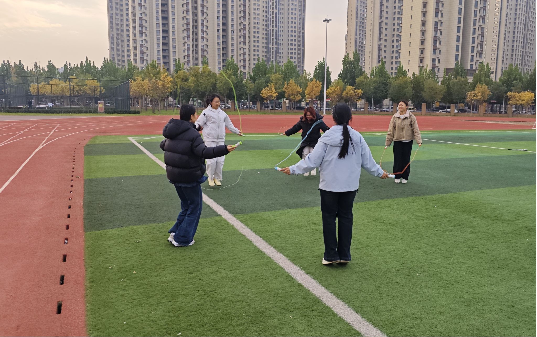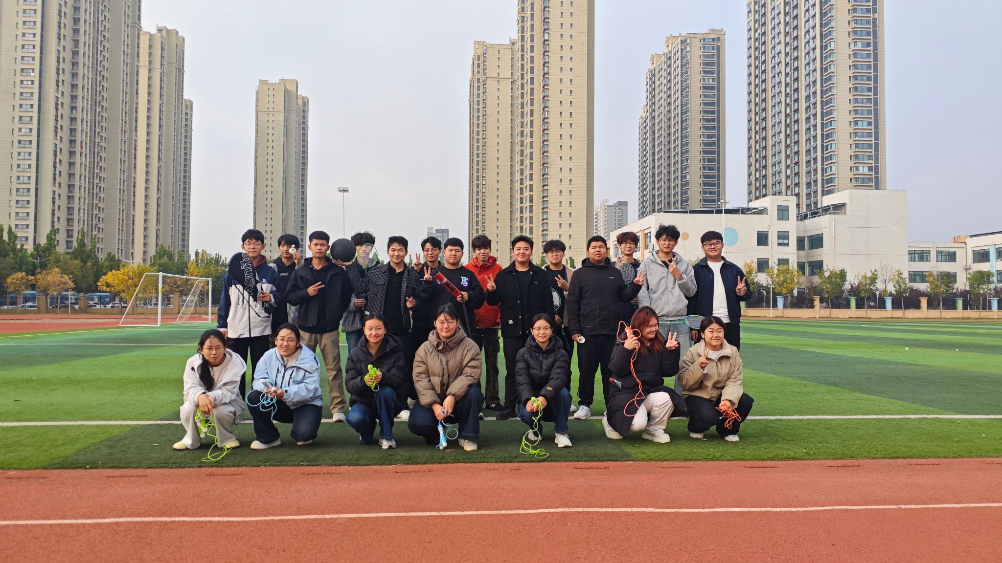 班主任老师积极发挥引导作用,带领同学们开展羽毛球、跳绳等趣味运动项目。羽毛球比赛中,同学们两两对打,挥拍、跳跃、接球,动作行云流水,场边不时响起阵阵喝彩声;跳绳项目则分为单人跳和集体跳,单人跳考验个人速度与协调性,集体跳则注重团队配合,大家相互鼓励、互相指导,在运动中增进了彼此的了解与信任。活动现场氛围热烈融洽,整个操场充满了欢声笑语,青春的活力在同学们的身影中尽情绽放。
