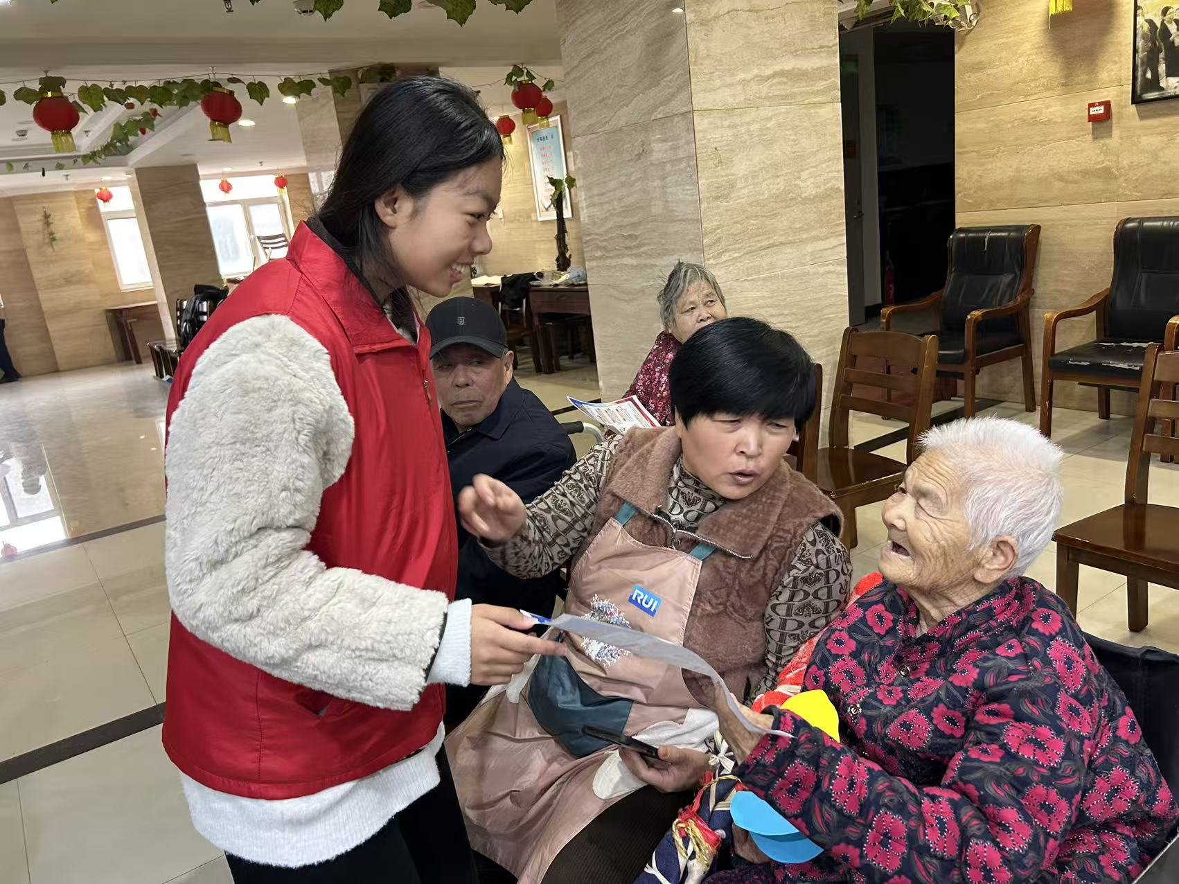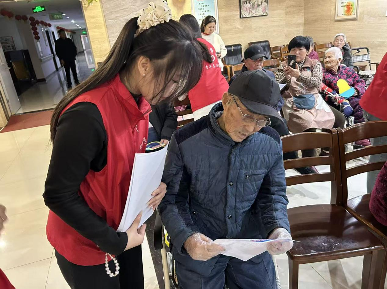活动现场,志愿者首先围绕老年人常见的电信网络诈骗类型,通过案例讲解、疑问解答等方式,向公寓内老年人普及反诈知识,提醒大家警惕“保健品诈骗”“虚假投资”等骗局,守护好个人财产安全。