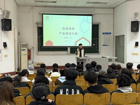 张良以“白羽肉鸡产业情况介绍”为主题,系统介绍了行业趋势、智能化养殖模式、环境控制及疫病防控等实务内容,拓宽了学生视野,有效增强了学生对专业的认同感与职业信心。孙希珍则围绕企业战略布局、校友成长案例及员工职业晋升通道展开分享,并就学生关心的实习机会、岗位需求与发展路径等问题进行互动交流,现场反响热烈。