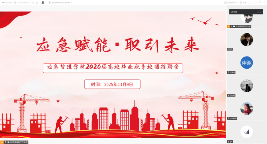 为切实做好2026届毕业生就业服务工作,搭建用人单位与毕业生双向选择的优质平台,于11月9日,应急管理学院举办第一期“应急赋能 职引未来”线上招聘会。