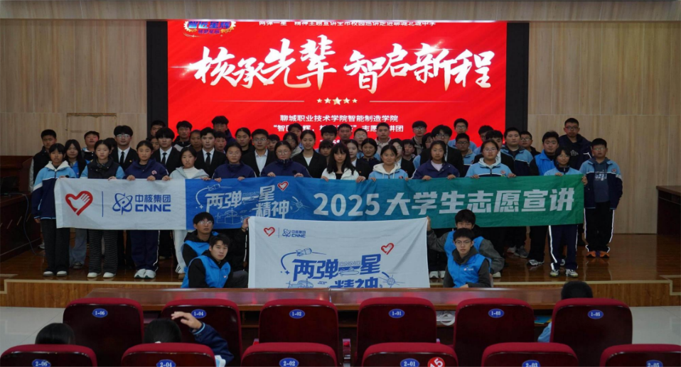 近日,智能制造学院“智匠星辉 核梦星辰”志愿宣讲团为聊城市北城中学300余名师生开展“核承先辈,智启新程”主题宣讲。该团队作为2025年国家级“两弹一星”精神志愿宣讲团,始终致力于推动崇高精神进校园,此次宣讲正是其服务青少年成长的重要实践。