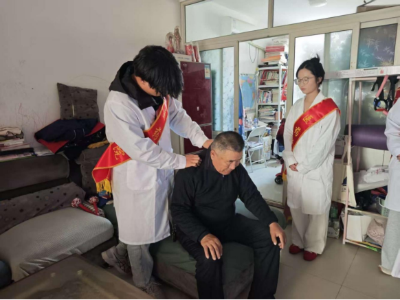 在社区工作人员的协助引导下,医药学院志愿者分成若干小组,走进多位老党员家中。他们充分发挥专业优势,认真细致地为老党员测量血压、检测血糖,并针对常见的肩颈不适、腰椎疲劳等问题,运用所学技能开展专业按摩,帮助老人缓解身体不适。
