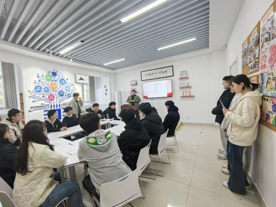 为传承红色基因,厚植家国情怀,胡洋洋老师带领青马宣讲团在润心园“一站式”学生社区开展“团课开讲啦”,宣讲团成员李钦炤、李得冉等三十名学生共同参与。李钦炤带领同学们逐句学唱《光荣啊,中国共青团》,李得冉以历史时间为脉络,通过珍贵史料、感人故事和生动案例,系统阐述了“两弹一星”精神的核心内涵。