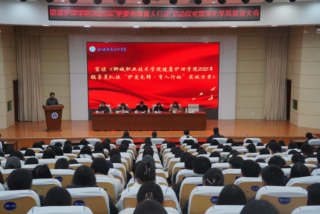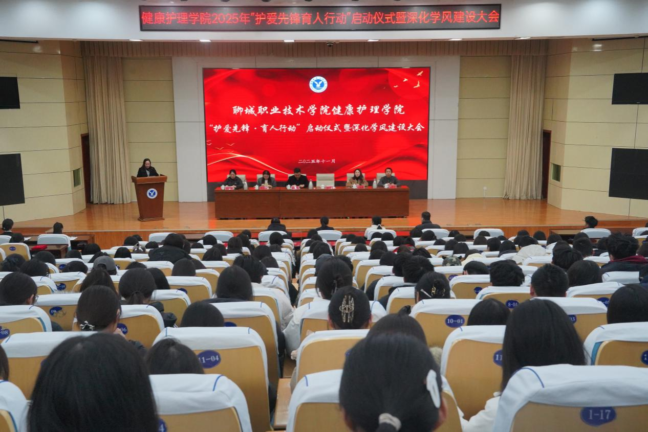 11月18日,健康护理学院举行2025年“护爱先锋·育人行动”启动仪式暨深化学风建设大会。学生工作部副部长李林,学生管理与服务科科长李宇潇,校团委办公室副主任徐雪彤,校团委书记、健康护理学院党总支副书记书记张博文,健康护理学院团总支副书记张翠翠、杨清刚及全体辅导员,2024、2025级学生代表参加。