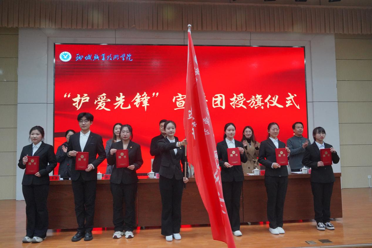 在“护爱先锋”宣讲团授旗仪式上,与会领导为宣讲团授旗并颁发聘书。“护爱先锋”宣讲团由品学兼优的学生代表表组成,以“讲好榜样故事,传递向上力量”为核心,开展各类正能量宣讲活动。