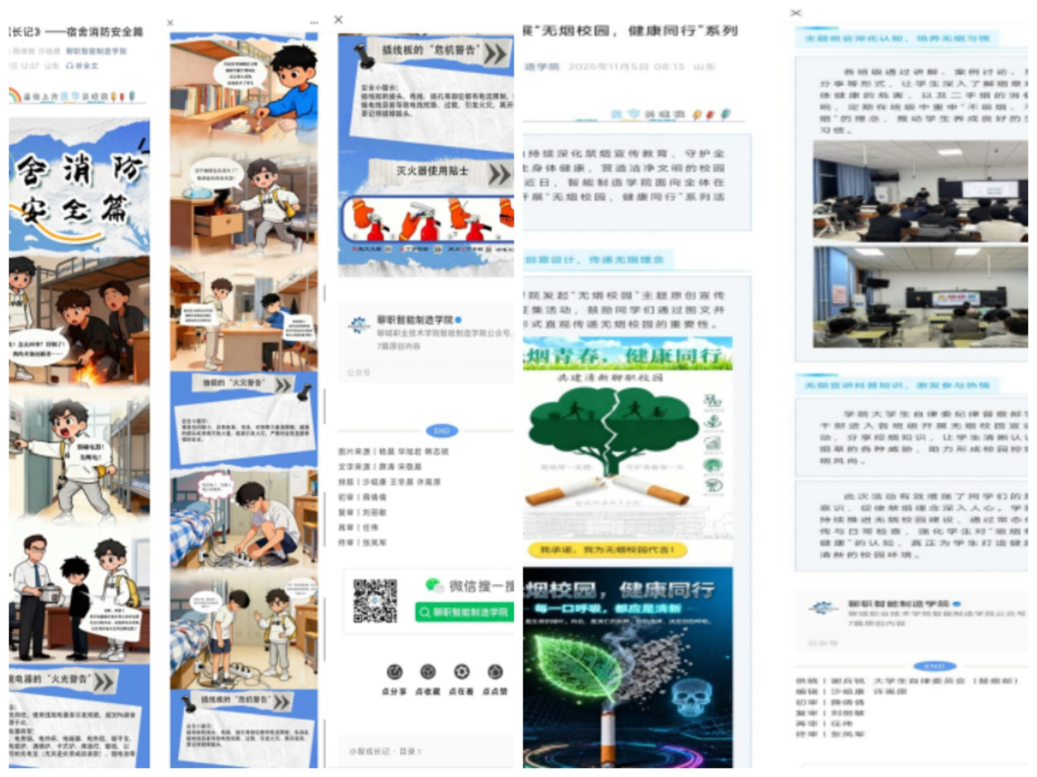 新媒体宣传营造氛围。学院充分利用新媒体平台,打造学院IP形象“小智”,创作“小智成长记”6期推文,以漫画形式普及安全知识,并持续推送消防安全知识、典型案例和活动动态,构建了多角度、全覆盖的宣传矩阵,积极营造“人人关注消防、人人参与消防”的浓厚校园安全文化氛围。