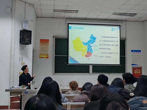 为精准对接2026届毕业生就业需求,搭建高质量校企人才交流桥梁,助力毕业生高质量充分就业,近日,经贸学院举行“经彩·职向未来”系列就业服务活动之第十四期校企对接宣讲会。太平洋保险在线服务科技有限公司山东分公司、山东九州通医药有限公司、鲁州信息科技有限公司、青岛润康盛禾商贸有限公司等四家企业走进校园,携带覆盖文化传媒、企业服务、管理咨询、数字科技等多方向的300余个优质岗位。