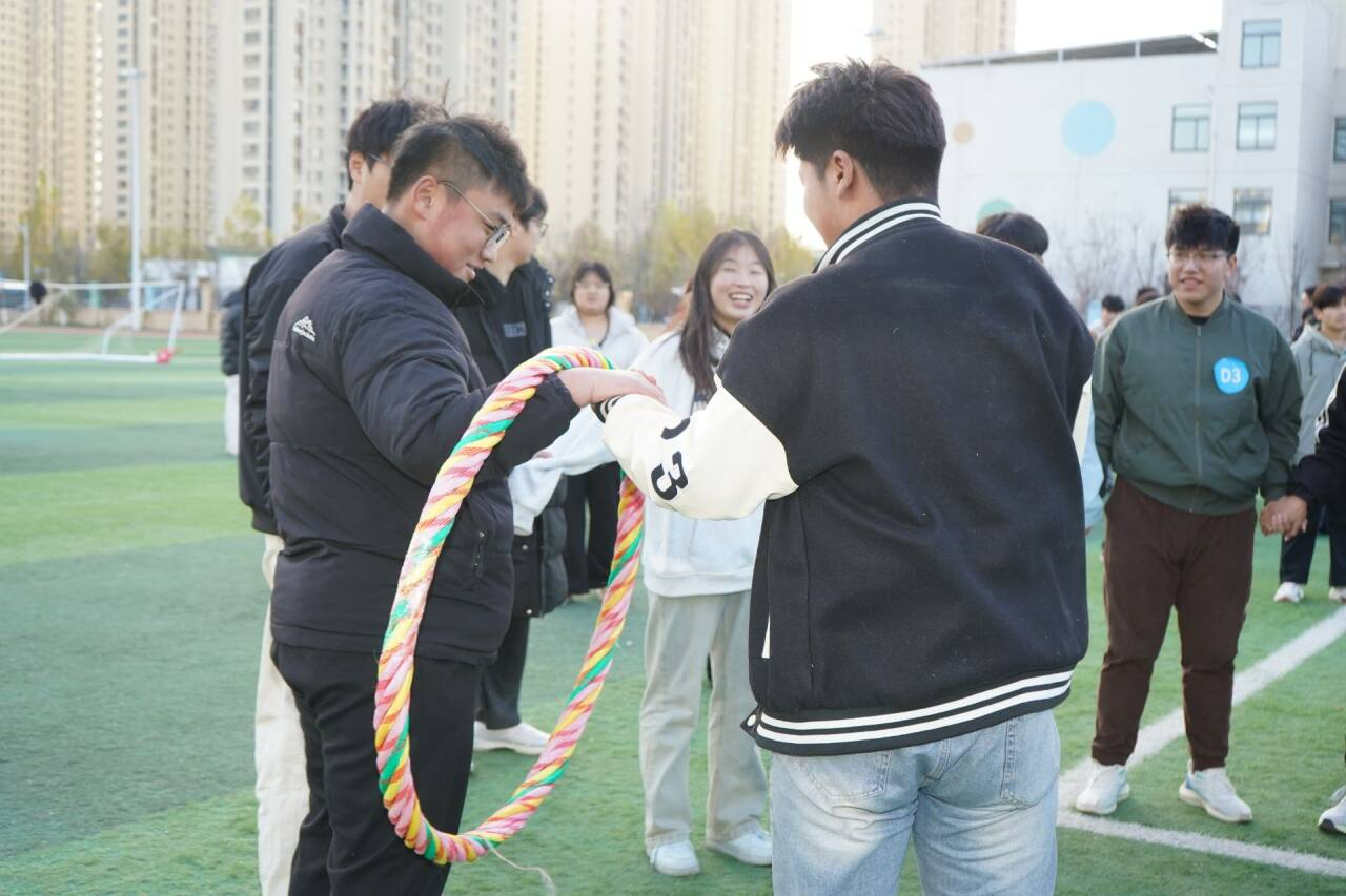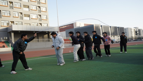活动以“沟通·协作·凝聚·成长”为主题,随机组队,分别确定了各队队长、队名、活动口号并现场展示团队风采。活动中,老师和同学们共同参与,通过开展“毛毛虫竞速”“履带战车”“环动接力”和“团队跳绳”等趣味竞赛项目,现场气氛热烈,切实激发了团队合作与竞技热情。