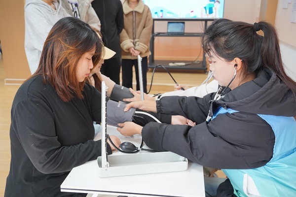 11月29日,八一社区活动中心人头攒动、暖意融融。健康护理学院“‘救’在身边 急救先锋”志愿服务项目团队携专业服务走进社区,以血压监测、心肺复苏教学、海姆立克急救法科普三项核心服务,将“家门口的健康课堂”搬到居民身边,用专业力量守护邻里安康。
