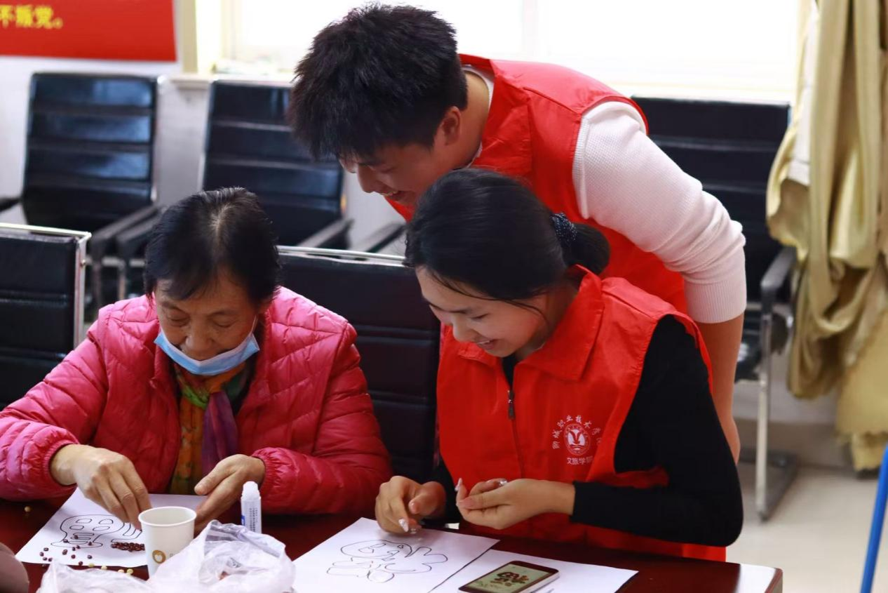 为积极响应“百万大学生进社区”的号召,践行“奉献、友爱、互助、进步”的志愿服务精神,志愿者日到来之际,文旅学院联合聊城大学美术学院志愿者服务队前去御苑社区,共同开展 “青春助老暖夕阳 五谷创意绘安康” 活动,活动以创意手工为纽带搭建青春助老桥梁,让社区老人在趣味互动中感受传统文化魅力与青年关怀。