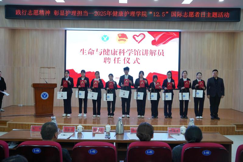 徐雪彤为2025年优秀志愿者、志愿先锋颁发证书,表彰他们在志愿服务中的突出表现;张博文为生命与健康科学馆讲解员颁发聘书,鼓励大家立足专业优势,讲好健康故事,传播健康知识。获表彰代表们接过证书与聘书,脸上洋溢着自豪的笑容,也坚定了他们继续投身志愿服务的决心。