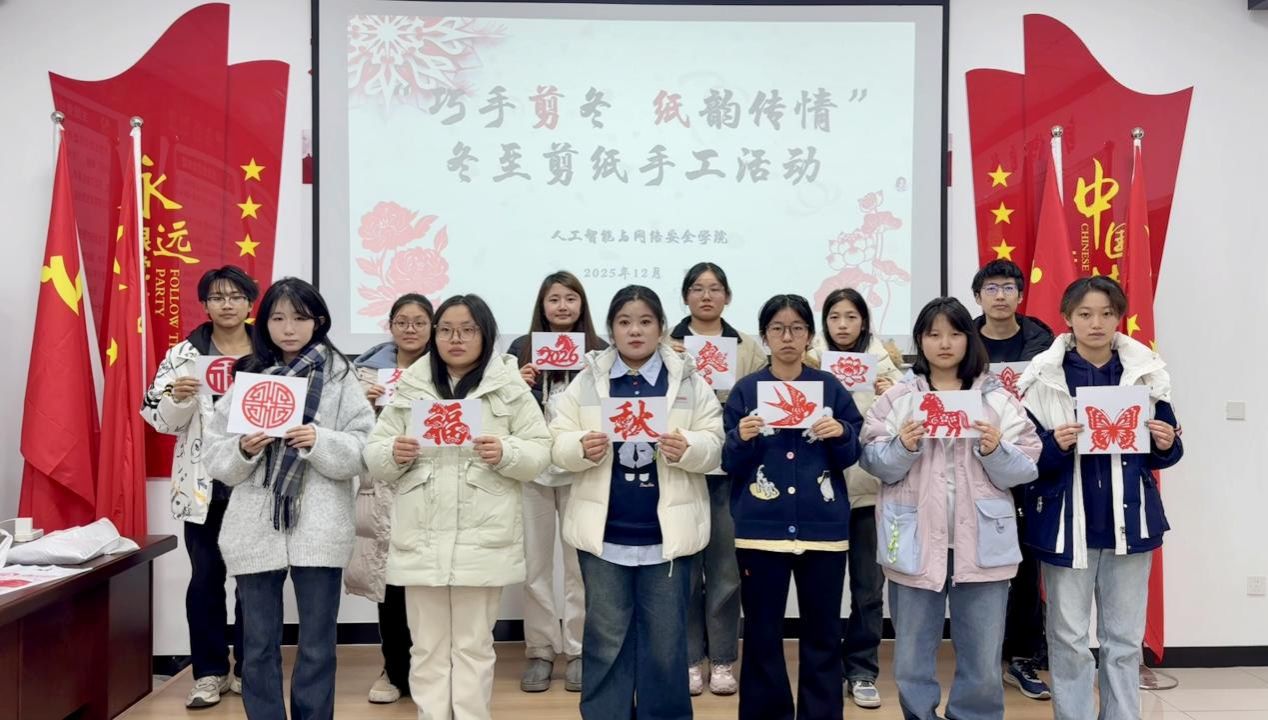 为传承中华优秀传统文化,感受非遗剪纸的独特魅力,人工智能与网络安全学院于12月19日开展“巧手剪冬 纸韵传情”冬至剪纸活动,30余名学生齐聚一堂,以红纸为媒,在指尖流转间定格冬日美好。