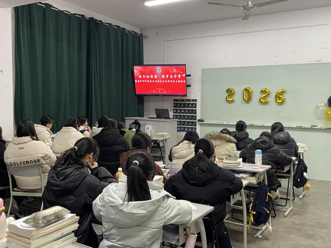 冬至阳生,岁回律转;元旦将至,华章待启。为传承中华优秀传统文化,丰富校园文化生活,营造温馨和睦的节日氛围,12月21日,健康护理学院以班级为单位在各班级开展“暖冬话团圆·新岁启华章”庆冬至迎元旦双节同庆主题教育活动,校团委负责人、健康护理学院党总支副书记张博文,团总支副书记张翠翠、杨清刚以及全体辅导员、班主任和在校班级学生共同参与,在欢声笑语中定格团圆时刻,共赴新年之约。