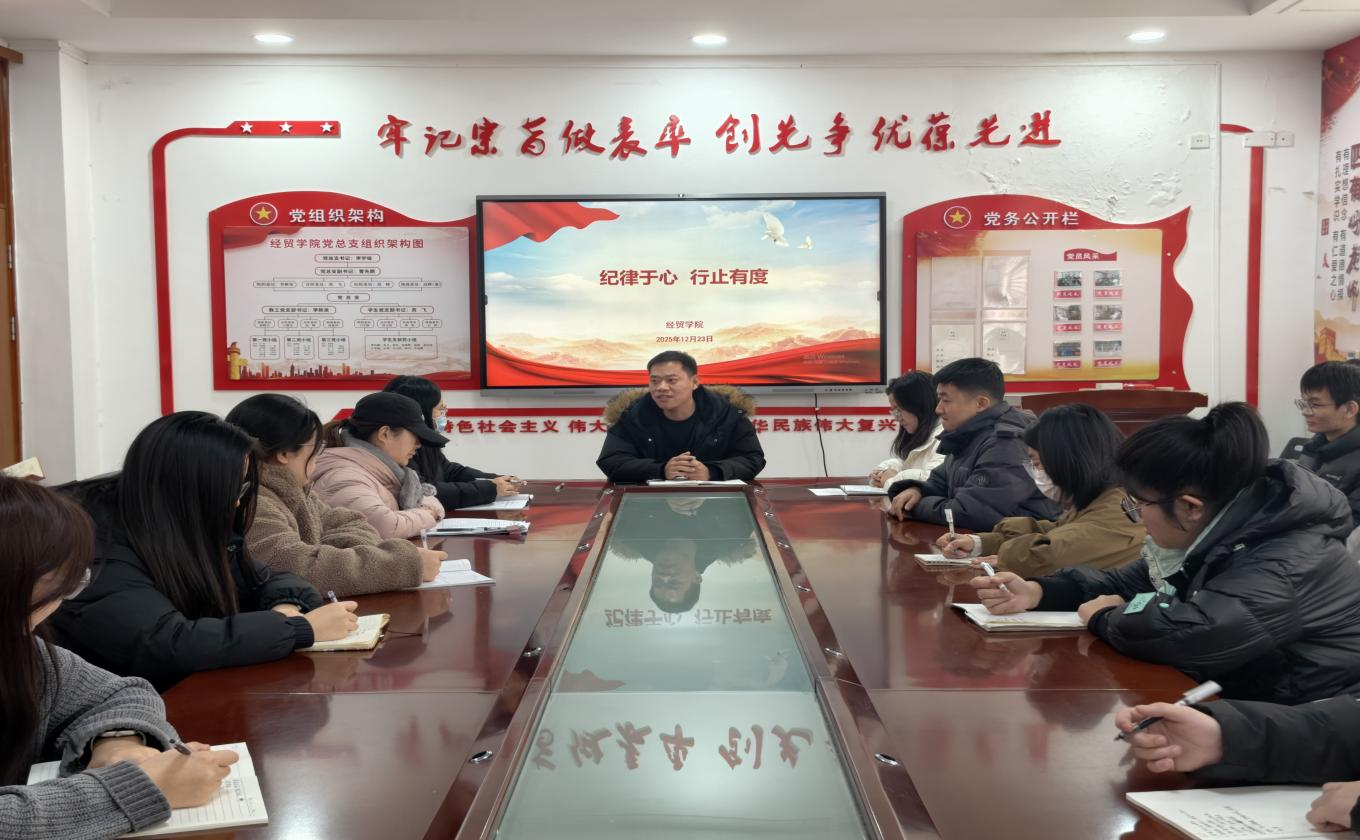 为进一步强化学生干部的责任意识与纪律观念,打造作风过硬、素质优良的学生干部队伍,12月23日,经贸学院组织开展“青马工程”2025——2026学年第一学期学生骨干作风建设暨第六讲。经贸学院学生干部代表齐聚一堂,共学纪律要求,共话责任担当。