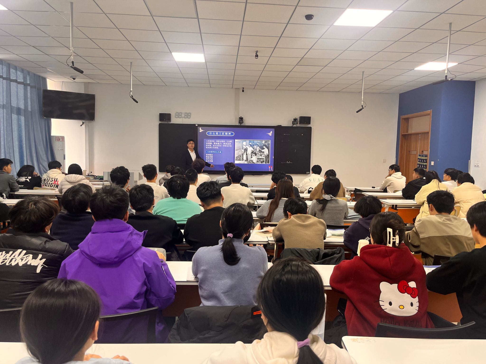 班主任们通过案例分享、视频展播、互动讨论等形式,向学生阐释“工匠精神”在人工智能、网络安全等前沿领域的时代意义。在讨论环节,同学们积极发言,就“如何在专业学习中践行工匠精神”“面对就业选择时如何平衡理想与现实”等话题展开交流。不少学生表示,此次班会使他们深刻认识到,无论是算法优化、数据安全还是动漫设计,都需要沉得下心、耐得住寂寞的专注力,这正是工匠精神在信息技术领域的具体体现。