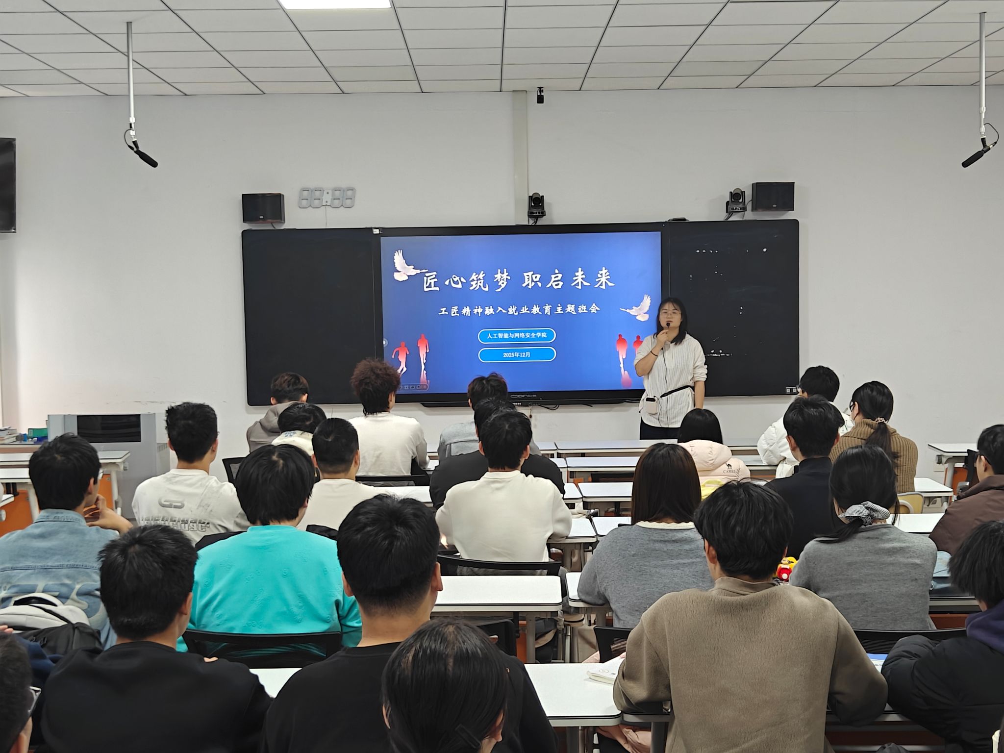 为深化就业教育工作,引导学生树立正确的职业价值观,12月24日,人工智能与网络安全学院组织各班级开展了“匠心筑梦 职引未来——工匠精神融入就业教育”主题班会活动。班会围绕新时代工匠精神的内涵,结合专业特色与就业形势,激励学生专注技能、追求卓越,为未来职业发展奠定坚实基础。