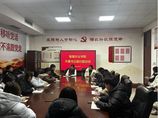 为深化师生沟通机制,推动学院高质量发展,智慧农业学院于12月24日举办“书记面对面”活动,团总支副书记孙晓慧主持会议,教学管理科科长徐卉及学生代表共同参会。
