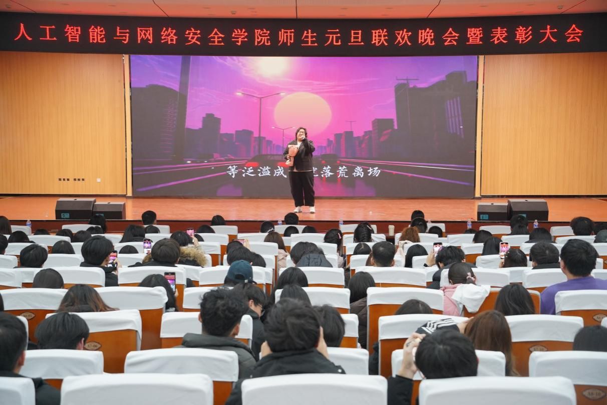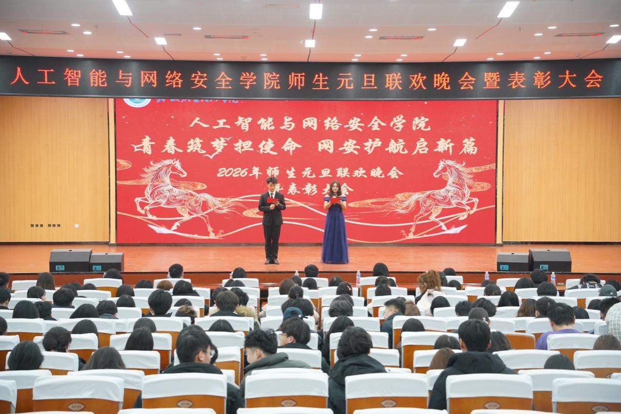 冬去春来,新元肇启。为迎接2026年的到来,12月28日,人工智能与网络安全学院在北校区图书馆一楼报告厅举办“青春筑梦担使命 网安护航启新篇”元旦联欢晚会暨表彰大会,师生齐聚一堂,在欢声笑语中启航新程、共赴未来。
