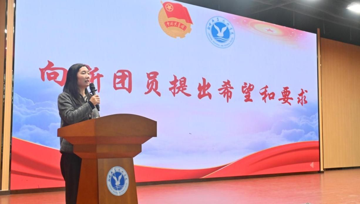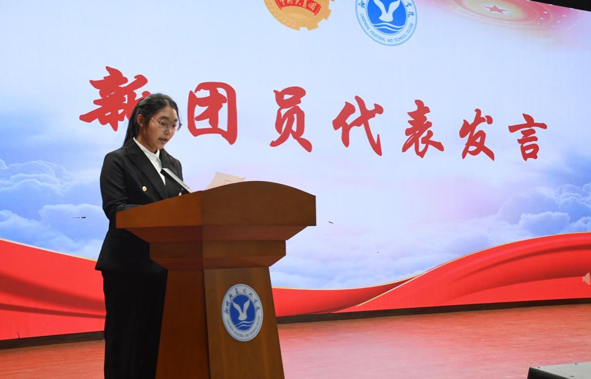宣誓结束后,新团员代表登台发言。她分享了自己从向往团组织到正式入团的成长心路,坦言入团不仅是身份的转变,更是责任的接力;并承诺将以此次入团为新起点,在学习中勤勉奋进、在实践中锤炼本领,以青年之姿践行团员担当。
