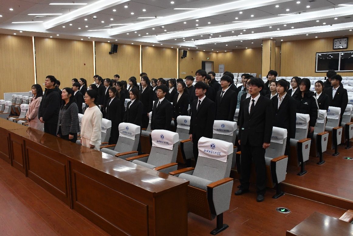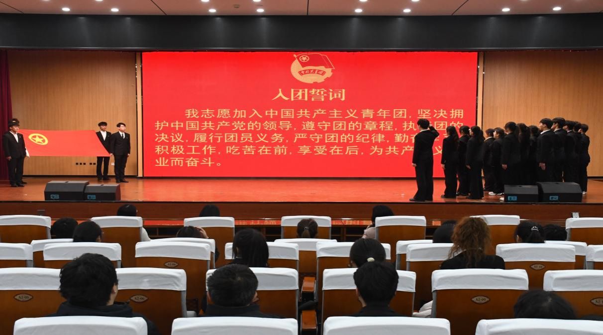 仪式在雄壮的国歌声中正式拉开序幕。主讲人宣读新团员名单后,与会老师为新团员依次佩戴团徽,熠熠生辉的团徽映照着新团员们庄重的神情,青春的荣誉感与使命感在会场悄然升温。