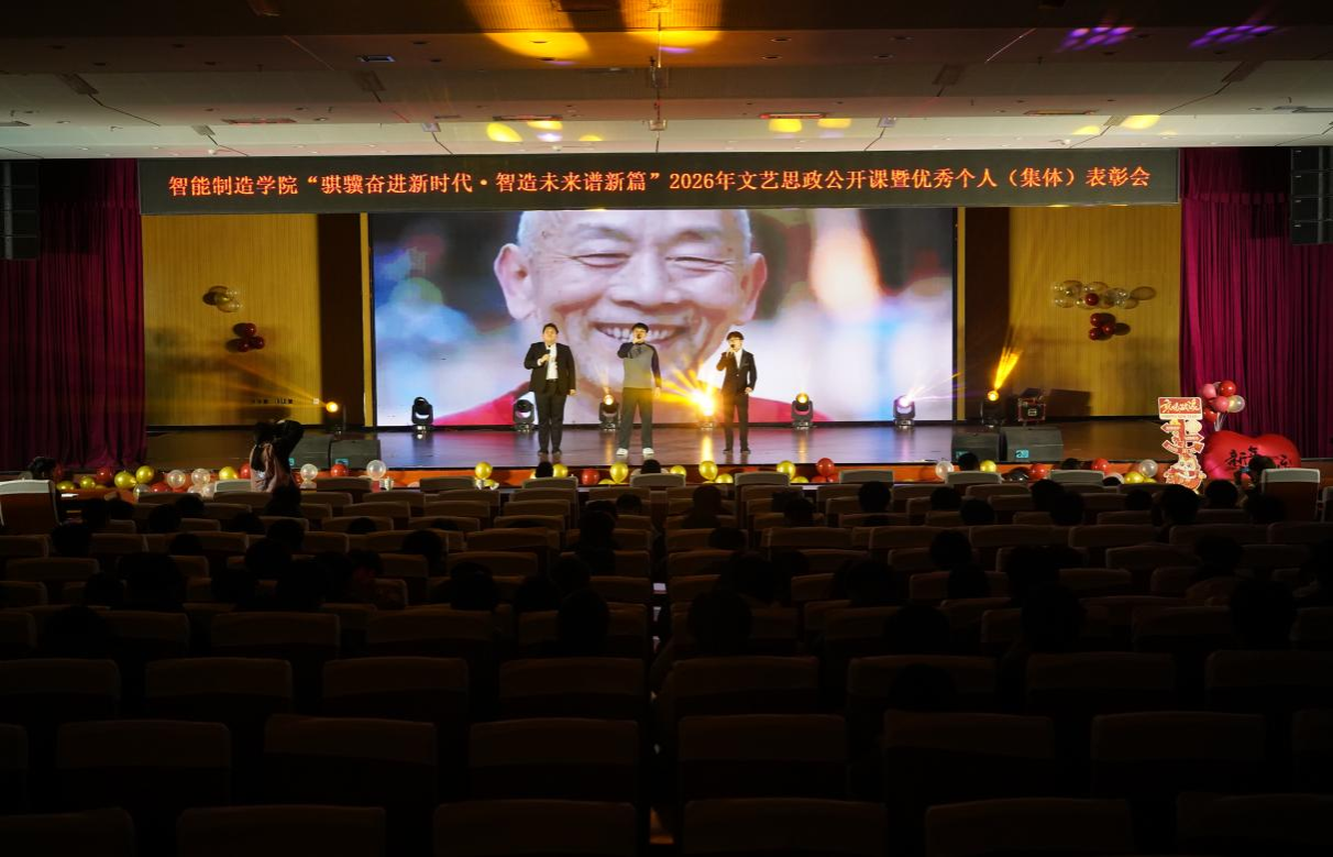 本次文艺思政公开课暨表彰大会采用篇章式结构,融思想引领、文艺展示与榜样表彰于一体,生动展现了智能制造学院学子的昂扬风采,进一步凝聚了全院师生团结奋进的信念。面向未来,学院将坚守立德树人根本任务,持续深化“三全育人”工作机制,引导青年学生坚定理想信念、锤炼过硬本领,为培养更多高素质技术技能人才而不懈奋斗。