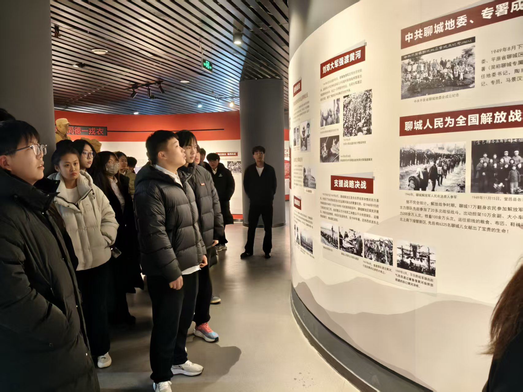 鲁西“四史”主题教育馆通过文物史料、场景复原与图文资料,全景展现鲁西大地的文明传承、革命征程与发展变迁。在讲解员引导下,大家品读史料、聆听革命先辈奋斗与廉洁故事,从鲁西首个党支部的初心坚守,到苏村阻击战英烈的舍生取义,再到新时代教育工作者的岗位担当,红色基因与廉洁文化深度交融,让全体学生接受了深刻的思想与精神洗礼。