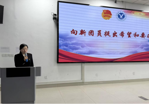 仪式在雄壮的国歌声中拉开序幕。苗俊厚宣读新团员名单后,学院各班团干部代表为全体新团员逐一颁发并佩戴团徽、发放团员证。在鲜艳的团旗下,新团员们右手握拳,庄严宣誓:“我志愿加入中国共产主义青年团……”铿锵誓言彰显了青春向党的坚定决心。随后,新老团员代表分别发言,分享对团组织的认识与成长感悟,表达了将个人理想融入国家发展的青春志向。